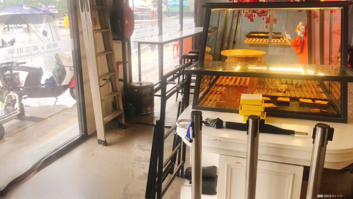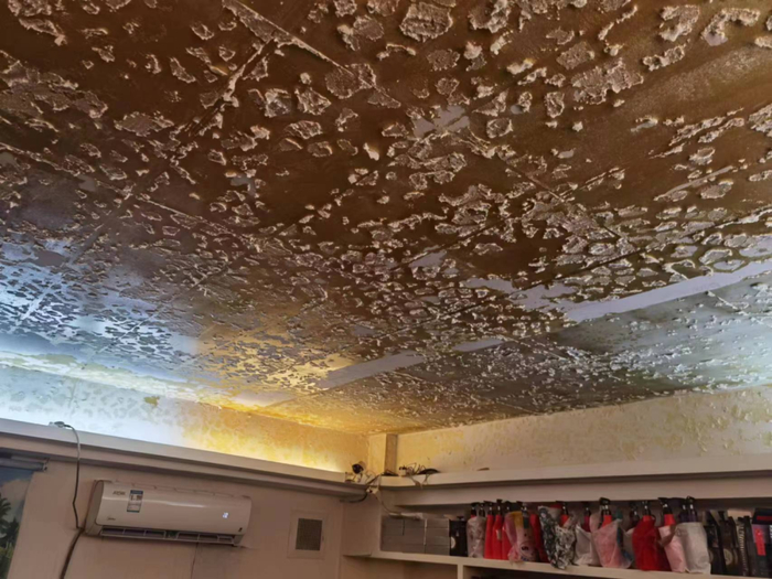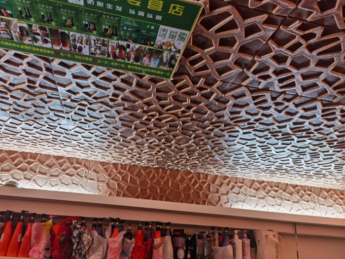 存在隐患:店内吊顶使用泡沫可燃物装饰
