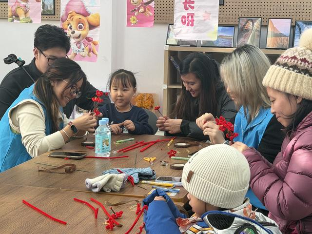 “这梅花开得真精神,过年看着真喜庆!”收到“微盆景”作品的金叔叔说。这些作品不只是花草摆设,而是由废旧材料精心打造而成,处处藏着巧思:矿泉水桶剪裁成花盆,废旧树枝弯折成梅枝,扭扭棒缠绕成花瓣,彩色胶带勾勒出细腻纹理,既蕴含绿色环保理念,又承载美好祝福。